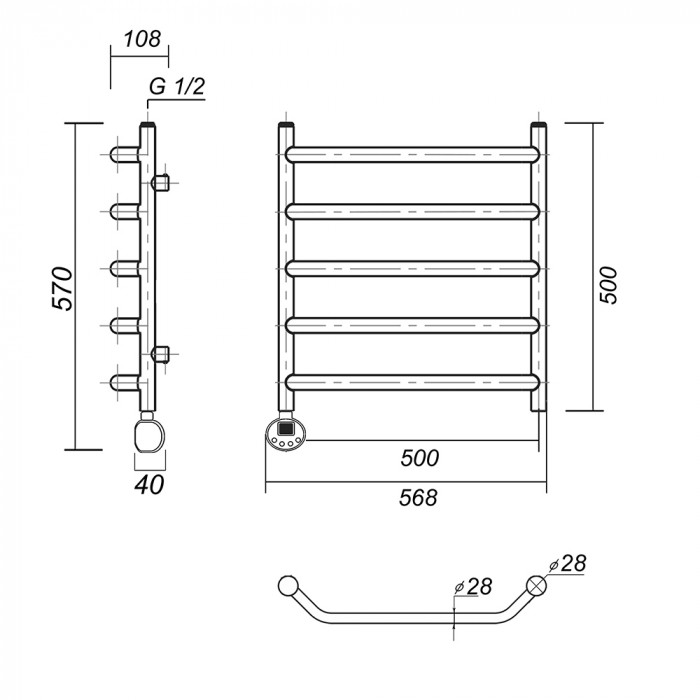Полотенцесушитель электрический Domoterm Лаура Лаура Плюс П5 500х500 АБР EL Античная бронза равноудаленная Тэн слева тэн стойка крепления - 4 шт., кран Маевского 1 шт., заглушка -1 шт. Тэн с цифровым терморегулятором полотенцесушители настенные Россия 2 года