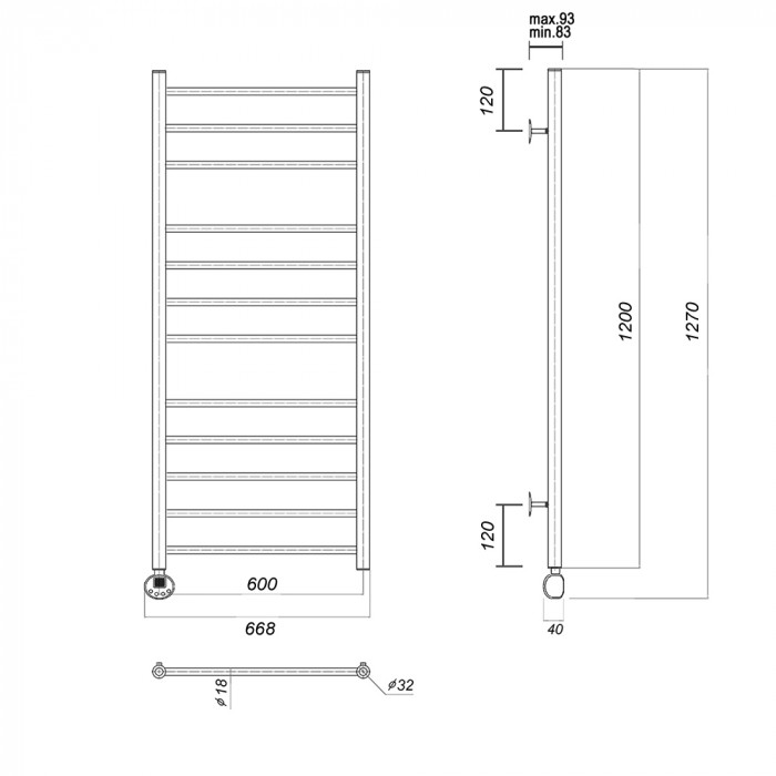 Полотенцесушитель электрический Domoterm Медея Медея П12 (3-4-5) 600x1200 EL Хром 3-4-5 Тэн слева тэн стойка крепления - 4 шт., кран Маевского 1 шт., заглушка -1 шт. Тэн с цифровым терморегулятором полотенцесушители настенные Россия 2 года