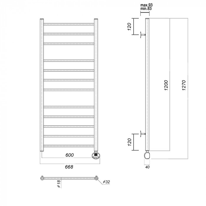Полотенцесушитель электрический Domoterm Медея Медея П12 (3-4-5) 600x1200 ER Хром