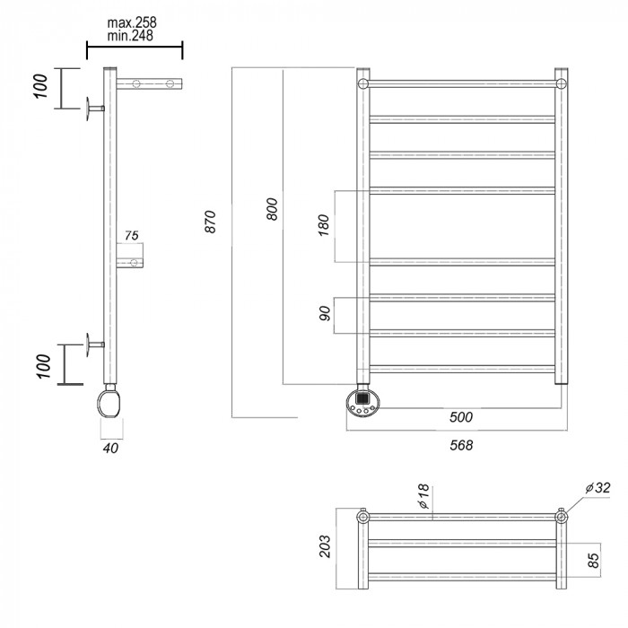 Полотенцесушитель электрический Domoterm Медея с 2 полками Медея сп2 П8 500x800 EL Хром 1-3-1-3 Тэн слева тэн стойка крепления - 4 шт., кран Маевского 1 шт., заглушка -1 шт. Тэн с цифровым терморегулятором полотенцесушители настенные Россия 2 года
