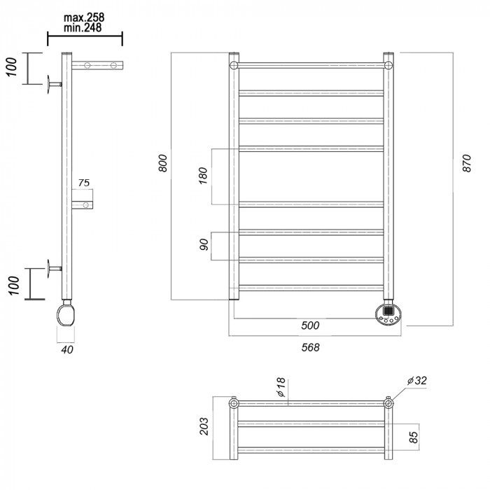 Полотенцесушитель электрический Domoterm Медея с 2 полками Медея сп2 П8 500x800 ER Хром 1-3-1-3 Тэн справа тэн стойка крепления - 4 шт., кран Маевского 1 шт., заглушка -1 шт. Тэн с цифровым терморегулятором полотенцесушители настенные Россия 2 года