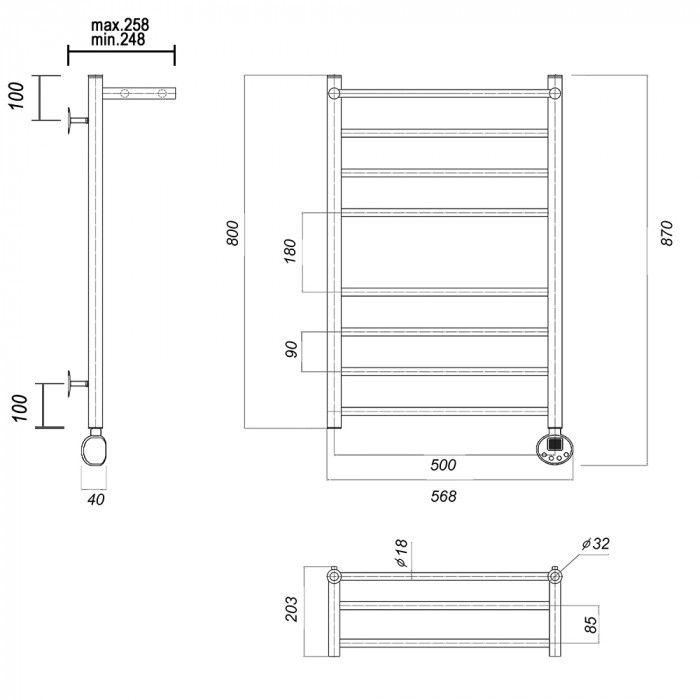 Полотенцесушитель электрический Domoterm Медея с полкой Медея сп П8 500x800 ER Хром 1-3-4 Тэн справа тэн стойка крепления - 4 шт., кран Маевского 1 шт., заглушка -1 шт. Тэн с цифровым терморегулятором полотенцесушители настенные Россия 2 года