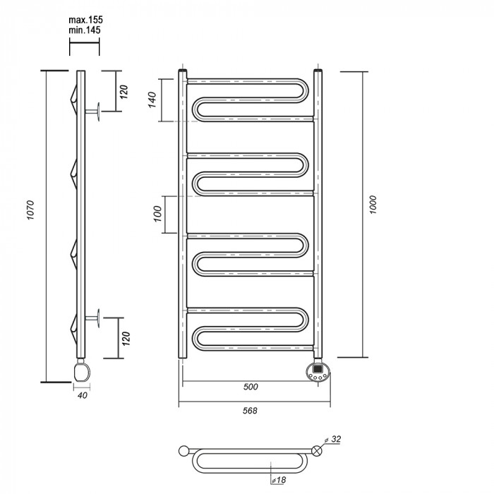 Полотенцесушитель электрический Domoterm Офелия Офелия П12 500x1000 ER Хром равноудаленная Тэн справа тэн стойка крепления - 4 шт., кран Маевского 1 шт., заглушка -1 шт. Тэн с цифровым терморегулятором полотенцесушители настенные Россия 2 года