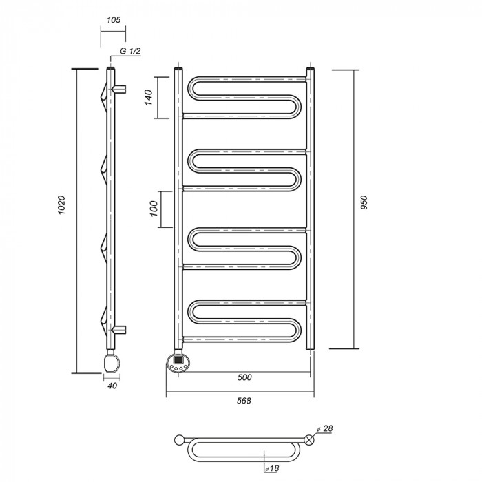 Полотенцесушитель электрический Domoterm Офелия Офелия П12 500x950 АБР EL Античная бронза равноудаленная Тэн слева тэн стойка крепления - 4 шт., кран Маевского 1 шт., заглушка -1 шт. Тэн с цифровым терморегулятором полотенцесушители настенные Россия 2 года