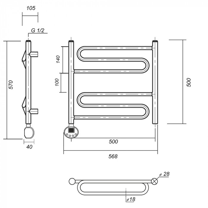 Полотенцесушитель электрический Domoterm Офелия Офелия П6 500x500 АБР EL Античная бронза равноудаленная Тэн слева тэн стойка крепления - 4 шт., кран Маевского 1 шт., заглушка -1 шт. Тэн с цифровым терморегулятором полотенцесушители настенные Россия 2 года