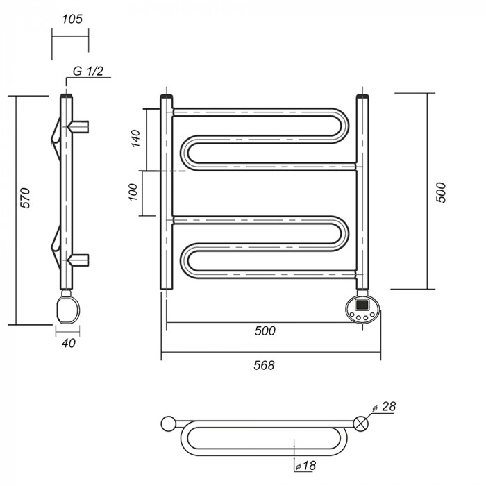Полотенцесушитель электрический Domoterm Офелия Офелия П6 500x500 АБР ER Античная бронза равноудаленная Тэн справа тэн стойка крепления - 4 шт., кран Маевского 1 шт., заглушка -1 шт. Тэн с цифровым терморегулятором полотенцесушители настенные Россия 2 года