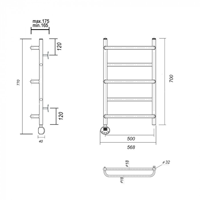 Полотенцесушитель электрический Domoterm Орфей Орфей П5 500x700 EL Хром равноудаленная Тэн слева тэн стойка крепления - 4 шт., кран Маевского 1 шт., заглушка -1 шт. Тэн с цифровым терморегулятором полотенцесушители настенные Россия 2 года