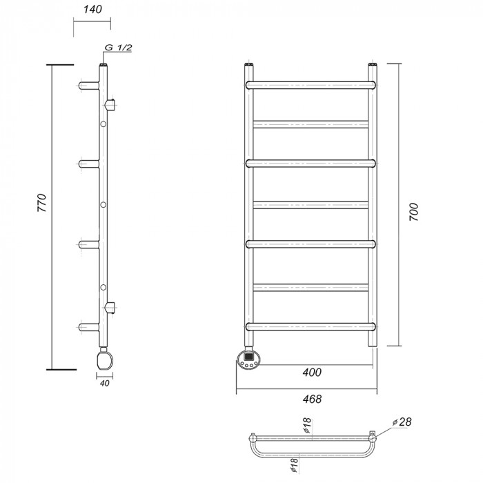 Полотенцесушитель электрический Domoterm Орфей Орфей П7 400x700 АБР EL Античная бронза равноудаленная Тэн слева тэн стойка крепления - 4 шт., кран Маевского 1 шт., заглушка -1 шт. Тэн с цифровым терморегулятором полотенцесушители настенные Россия 2 года