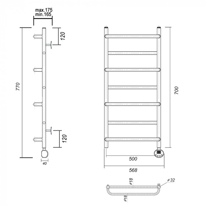 Полотенцесушитель электрический Domoterm Орфей Орфей П7 500x700 ER Хром равноудаленная Тэн справа тэн стойка крепления - 4 шт., кран Маевского 1 шт., заглушка -1 шт. Тэн с цифровым терморегулятором полотенцесушители настенные Россия 2 года