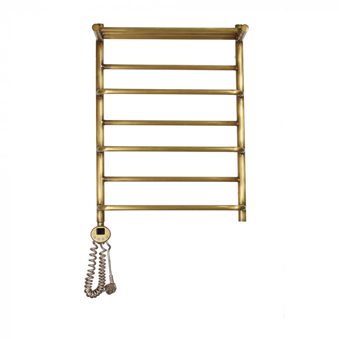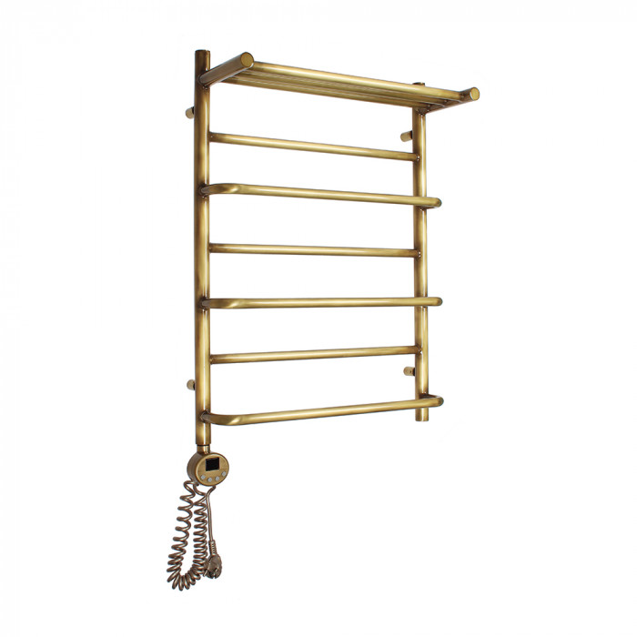 Полотенцесушитель электрический Domoterm Орфей Орфей с полкой П7 500x700 АБР EL Античная бронза равноудаленная Тэн слева тэн стойка крепления - 4 шт., кран Маевского 1 шт., заглушка -1 шт. Тэн с цифровым терморегулятором полотенцесушители настенные Россия 2 года