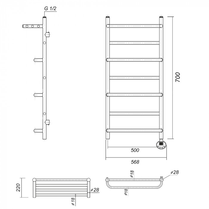 Полотенцесушитель электрический Domoterm Орфей Орфей с полкой П7 500x700 АБР ER Античная бронза равноудаленная Тэн справа тэн стойка крепления - 4 шт., кран Маевского 1 шт., заглушка -1 шт. Тэн с цифровым терморегулятором полотенцесушители настенные Россия 2 года