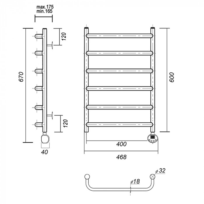 Полотенцесушитель электрический Domoterm Стефано Стефано П6 400x600 ER Хром равноудаленная Тэн справа тэн стойка крепления - 4 шт., кран Маевского 1 шт., заглушка -1 шт. Тэн с цифровым терморегулятором полотенцесушители настенные Россия 2 года