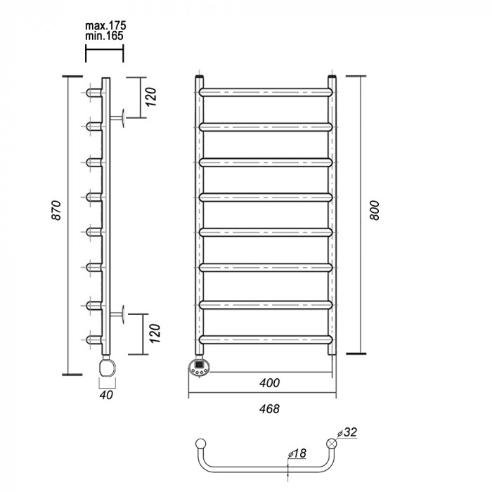 Полотенцесушитель электрический Domoterm Стефано Стефано П8 400x800 EL Хром равноудаленная Тэн слева тэн стойка крепления - 4 шт., кран Маевского 1 шт., заглушка -1 шт. Тэн с цифровым терморегулятором полотенцесушители настенные Россия 2 года