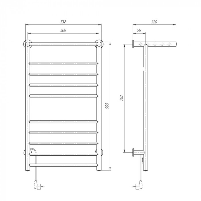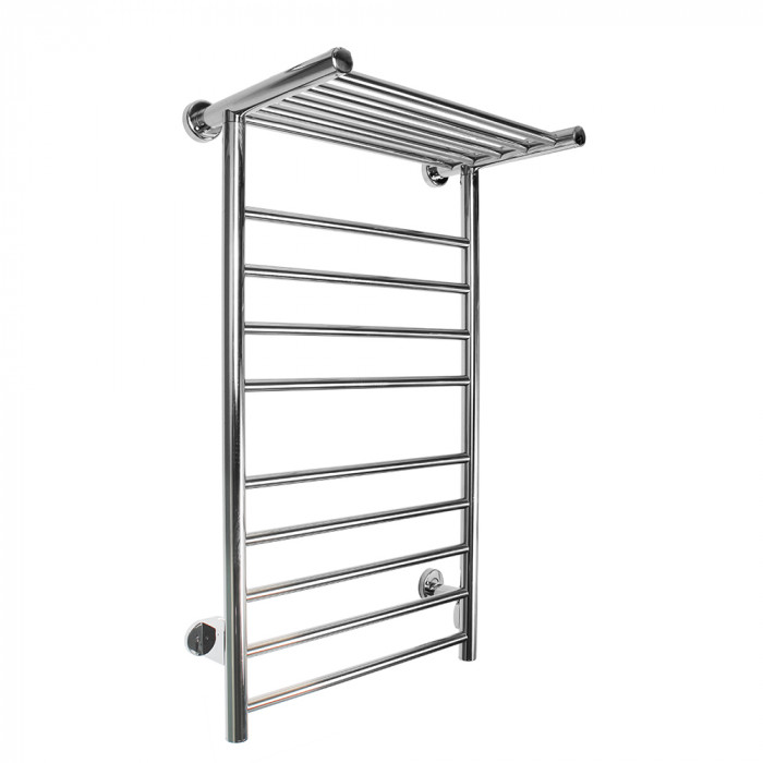 Полотенцесушитель элктрический Domoterm Аврора с полкой DMT 109-Т5 П10 50x90 EK L Хром подключение слева сухой греющий кабель стойка крепления - 4 шт. нержавеющая сталь лесенка Россия 2 года