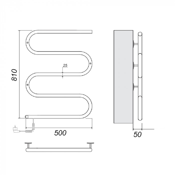Полотенцесушитель элктрический Domoterm E-образный DMT 103-25 50x81 EK L Хром подключение слева сухой греющий кабель стойка крепления - 4 шт. нержавеющая сталь E-образный Россия 2 года