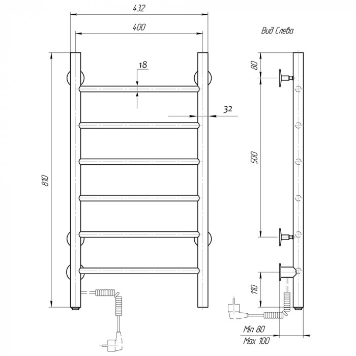Полотенцесушитель элктрический Domoterm Классик DMT 109-6 40x81 EK L Хром подключение слева сухой греющий кабель стойка крепления - 4 шт. нержавеющая сталь лесенка Россия 2 года