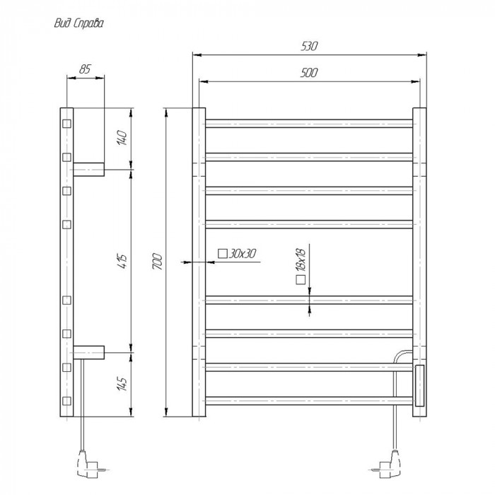 Полотенцесушитель элктрический Domoterm Квадро DMT 109-S П8 50x70 TBOX EK R Хром подключение справа сухой греющий кабель стойка крепления - 4 шт. нержавеющая сталь лесенка Россия 2 года