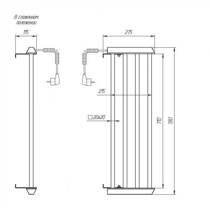 Полотенцесушитель элктрический Domoterm Полка DMT 73 25x83 EK R Хром подключение справа сухой греющий кабель стойка крепления - 2 шт. нержавеющая сталь нестандартная Россия 2 года