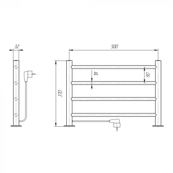 Полотенцесушитель элктрический Domoterm Полка DMT-T4 38x53 EK L Хром подключение слева сухой греющий кабель стойка крепления - 2 шт. нержавеющая сталь нестандартная Россия 2 года