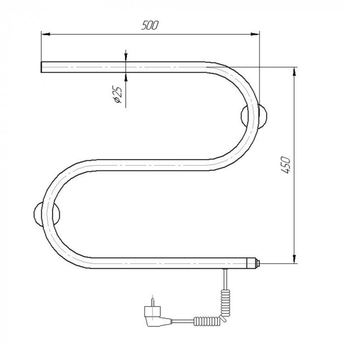 Полотенцесушитель элктрический Domoterm S-образный DMT 112 42x50 EK R Хром подключение справа сухой греющий кабель стойка крепления - 3 шт. нержавеющая сталь S-образный Россия 2 года