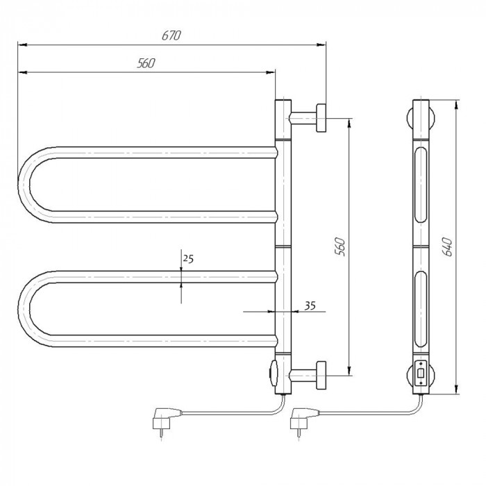 Полотенцесушитель элктрический Domoterm Сальса DMT 108F П4 65x50 EK Хром электропровод с вилкой сухой греющий кабель стойка крепления - 2 шт. нержавеющая сталь E-образный Россия 2 года