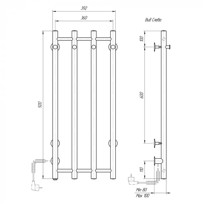 Полотенцесушитель элктрический Domoterm Танго DMT 109-V4 36x92 EK L Хром подключение слева сухой греющий кабель стойка крепления - 4 шт. нержавеющая сталь нестандартная Россия 2 года