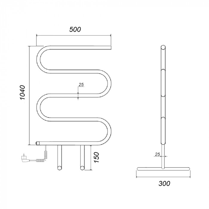 полотенцесушитель напольный Domoterm E-образный, напольный DMT 103-25 50x104 EK (напольный) Хром электропровод с вилкой сухой греющий кабель ножки - 2 шт. нержавеющая сталь E-образный Россия 2 года