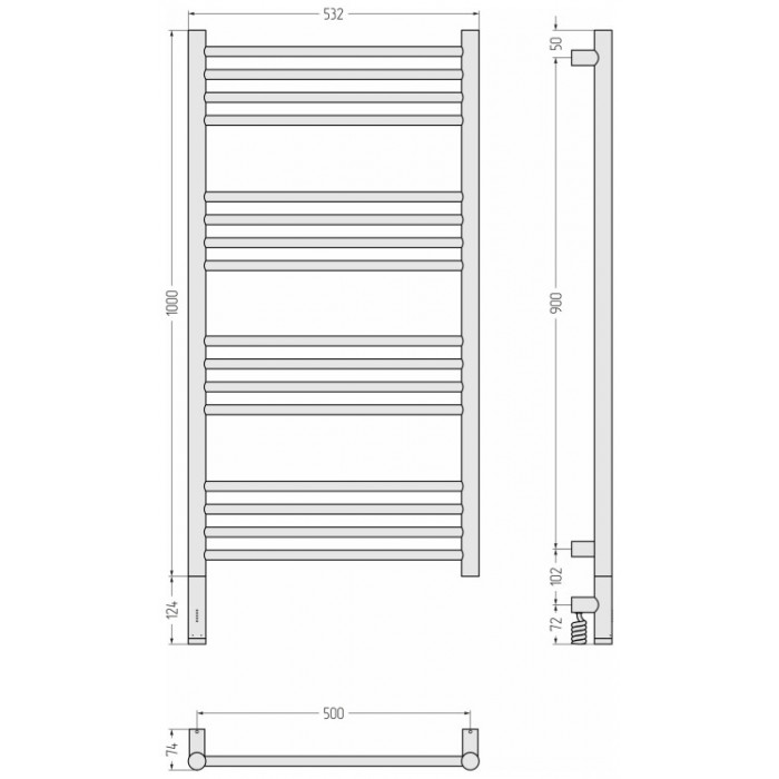Полотенцесушитель, Сунержа, Богема 3.1, прямая, шгв 532*74*1124, нижнее слева, МЭМ, цвет-чёрный матовый