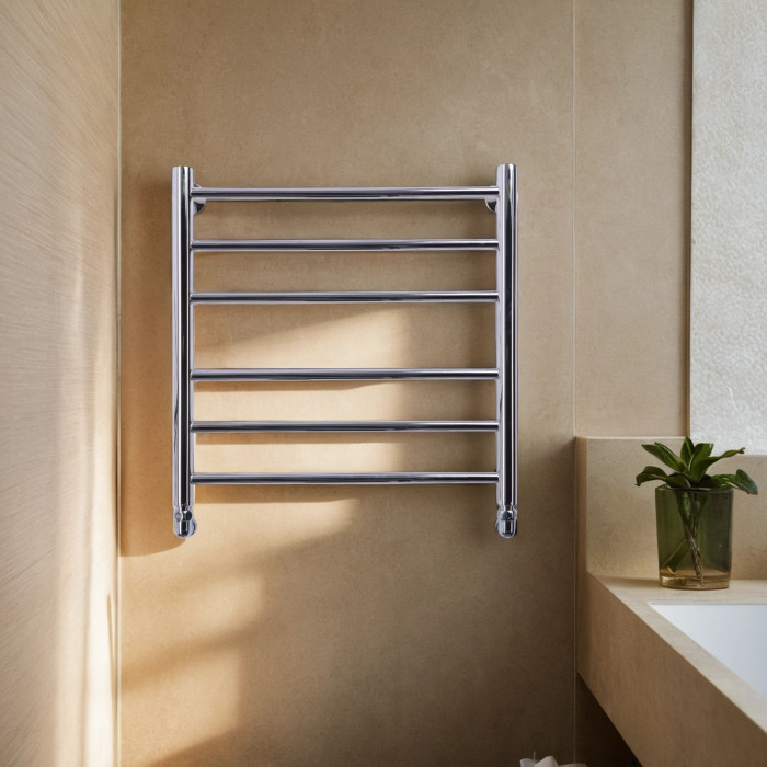 Полотенцесушитель водяной Comfysan Luce W-6 60/50, хром 013363 Межосевое расстояние (см) 50 Лесенка полированное металлическое Хром По выбору: нижнее, боковое, диагональное Водяной Россия Полотенцесушитель водяной Comfysan Luce W-6 60/50, хром