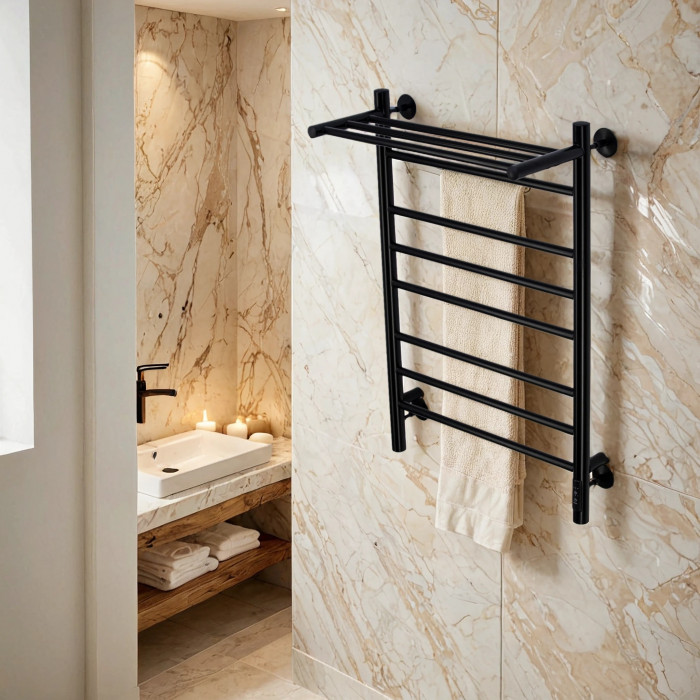 Полотенцесушитель водяной Comfysan Luce W-8 80/40 с полкой, черный