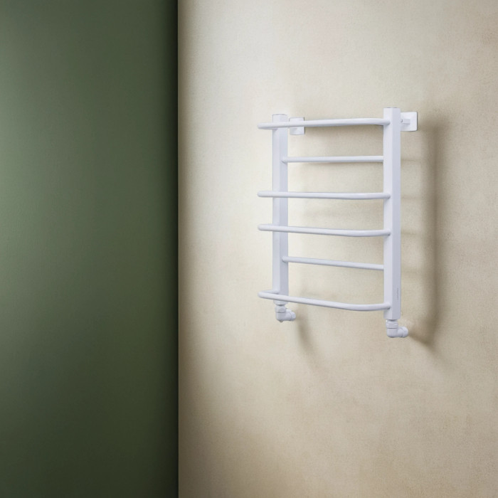 Полотенцесушитель водяной Comfysan Puro-K W-6 60/50, белый 013134 Межосевое расстояние (см) 50 Лесенка окрашенное Белый матовый По выбору: нижнее, боковое, диагональное Водяной Россия Полотенцесушитель водяной Comfysan Puro-K W-6 60/50, белый