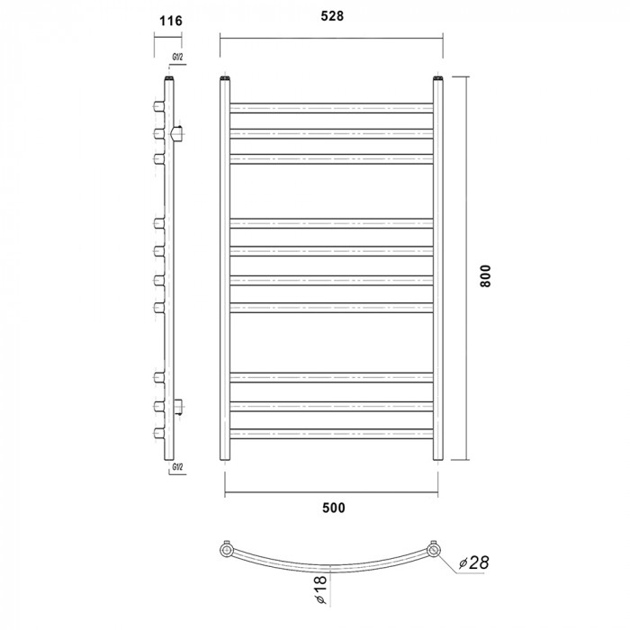 Полотенцесушитель водяной Domoterm Калипсо Калипсо П10 500x800 АБР Античная бронза