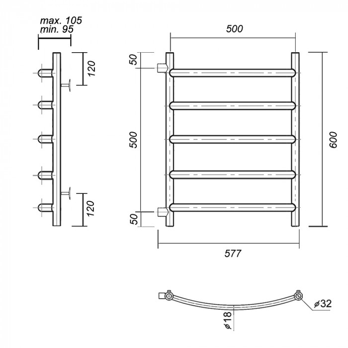 Полотенцесушитель водяной Domoterm Калипсо Калипсо П5 500x600-500 Хром