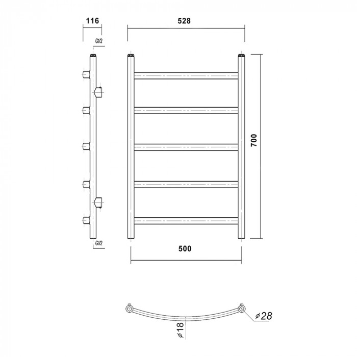 Полотенцесушитель водяной Domoterm Калипсо Калипсо П5 500x700 АБР Античная бронза равноудаленная нижнее 1/2" ВР (внутренняя резьба) стойка крепления - 4 шт., переходник угловой 1/2х3/4 - 2 шт., кран Маевского 1 шт., заглушка -1 шт. полотенцесушители настенные Россия 5 лет