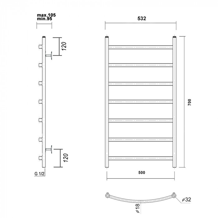 Полотенцесушитель водяной Domoterm Калипсо Калипсо П7 500x700 ЧРН Черный, матовый