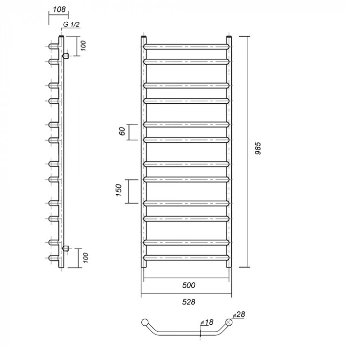 Полотенцесушитель водяной Domoterm Лаура Лаура П12 500x985 АБР Античная бронза 2-2-2-2-2-2 нижнее 1/2" ВР (внутренняя резьба) стойка крепления - 4 шт., переходник угловой 1/2х3/4 - 2 шт., кран Маевского 1 шт., заглушка -1 шт. полотенцесушители настенные Россия 5 лет