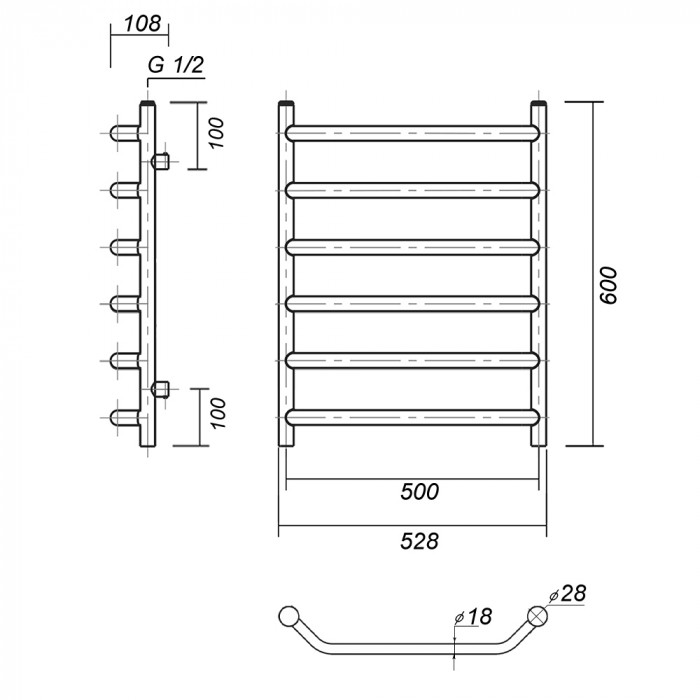 Полотенцесушитель водяной Domoterm Лаура Лаура П6 500x600 АБР Античная бронза равноудаленная нижнее 1/2" ВР (внутренняя резьба) стойка крепления - 4 шт., переходник угловой 1/2х3/4 - 2 шт., кран Маевского 1 шт., заглушка -1 шт. полотенцесушители настенные Россия 5 лет