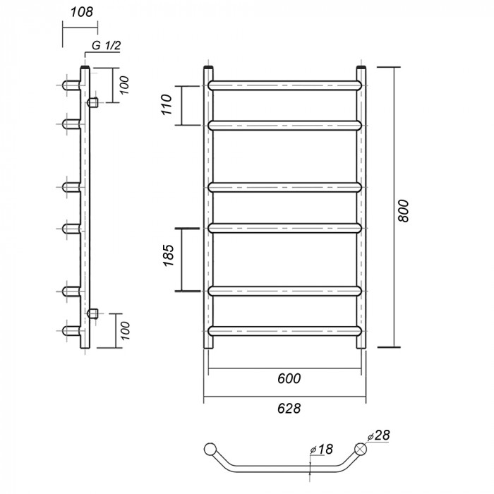 Полотенцесушитель водяной Domoterm Лаура Лаура П6 600x800 АБР Античная бронза 2-2-2 нижнее 1/2" ВР (внутренняя резьба) стойка крепления - 4 шт., переходник угловой 1/2х3/4 - 2 шт., кран Маевского 1 шт., заглушка -1 шт. полотенцесушители настенные Россия 5 лет