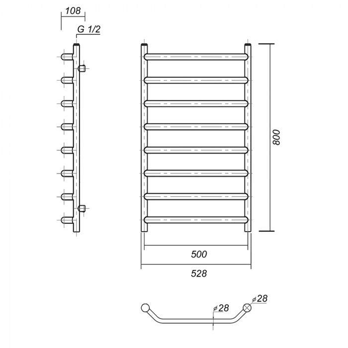 Полотенцесушитель водяной Domoterm Лаура Плюс Лаура Плюс П8 500x800 АБР Античная бронза равноудаленная нижнее 1/2" ВР (внутренняя резьба) стойка крепления - 4 шт., переходник угловой 1/2х3/4 - 2 шт., кран Маевского 1 шт., заглушка -1 шт. полотенцесушители настенные Россия 5 лет