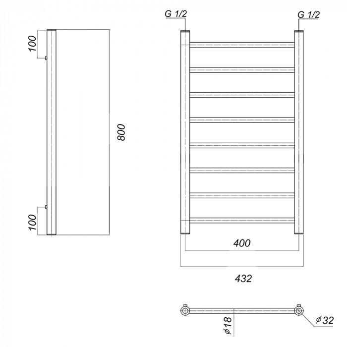 Полотенцесушитель водяной Domoterm Медея Медея П8 400x800 золото золото 4-4 нижнее 1/2" ВР (внутренняя резьба) стойка крепления - 4 шт., переходник угловой 1/2х3/4 - 2 шт., кран Маевского 1 шт., заглушка -1 шт. полотенцесушители настенные Россия 5 лет