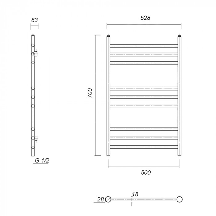 Полотенцесушитель водяной Domoterm Медея Медея П9 500х700 АБР Античная бронза 3-3-3 нижнее 1/2" ВР (внутренняя резьба) стойка крепления - 4 шт., переходник угловой 1/2х3/4 - 2 шт., кран Маевского 1 шт., заглушка -1 шт. полотенцесушители настенные Россия 5 лет