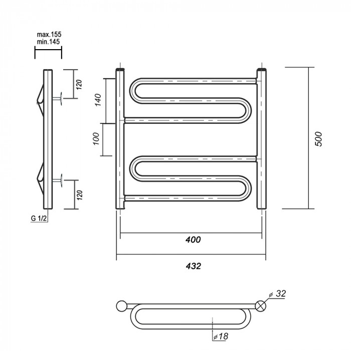 Полотенцесушитель водяной Domoterm Офелия Офелия П6 400x500 Хром