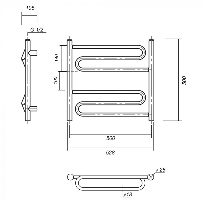 Полотенцесушитель водяной Domoterm Офелия Офелия П9 500x700 АБР Античная бронза равноудаленная нижнее 1/2" ВР (внутренняя резьба) стойка крепления - 4 шт., переходник угловой 1/2х3/4 - 2 шт., кран Маевского 1 шт., заглушка -1 шт. полотенцесушители настенные Россия 5 лет