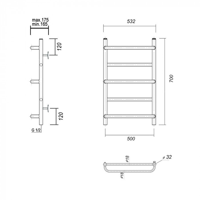 Полотенцесушитель водяной Domoterm Орфей Орфей П5 500x700 Хром равноудаленная нижнее 1/2" ВР (внутренняя резьба) стойка крепления - 4 шт., переходник угловой 1/2х3/4 - 2 шт., кран Маевского 1 шт., заглушка -1 шт. полотенцесушители настенные Россия 5 лет