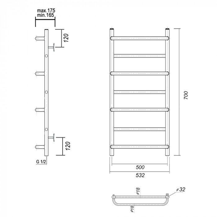 Полотенцесушитель водяной Domoterm Орфей Орфей П7 500x700 Хром равноудаленная нижнее 1/2" ВР (внутренняя резьба) стойка крепления - 4 шт., переходник угловой 1/2х3/4 - 2 шт., кран Маевского 1 шт., заглушка -1 шт. полотенцесушители настенные Россия 5 лет