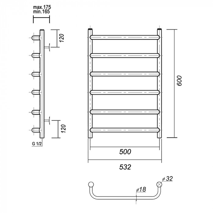 Полотенцесушитель водяной Domoterm Стефано Стефано П6 500x600 Хром равноудаленная стойка крепления - 4 шт., переходник угловой 1/2х3/4 - 2 шт., кран Маевского 1 шт., заглушка -1 шт. полотенцесушители настенные Россия 5 лет