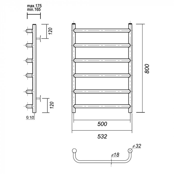 Полотенцесушитель водяной Domoterm Стефано Стефано П6 500x800 Хром равноудаленная стойка крепления - 4 шт., переходник угловой 1/2х3/4 - 2 шт., кран Маевского 1 шт., заглушка -1 шт. полотенцесушители настенные Россия 5 лет