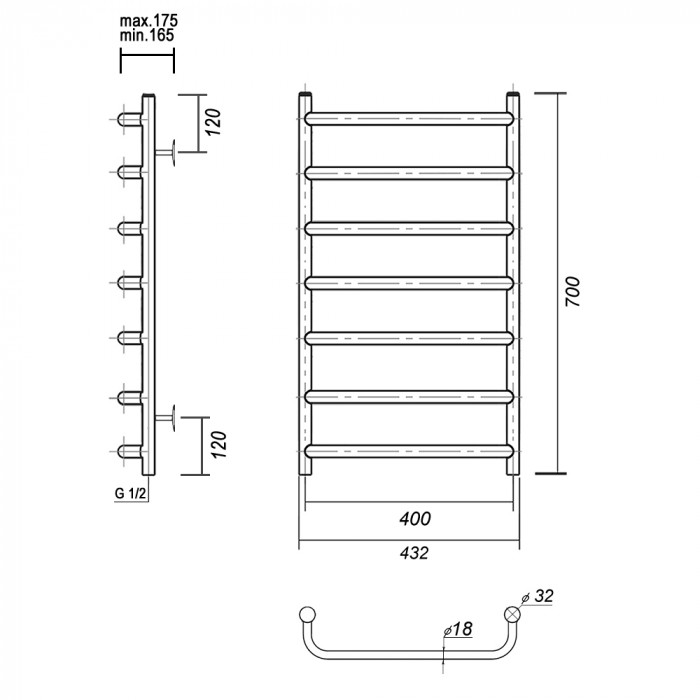 Полотенцесушитель водяной Domoterm Стефано Стефано П7 400x700 Хром равноудаленная нижнее 1/2" ВР (внутренняя резьба) стойка крепления - 4 шт., переходник угловой 1/2х3/4 - 2 шт., кран Маевского 1 шт., заглушка -1 шт. полотенцесушители настенные Россия 5 лет