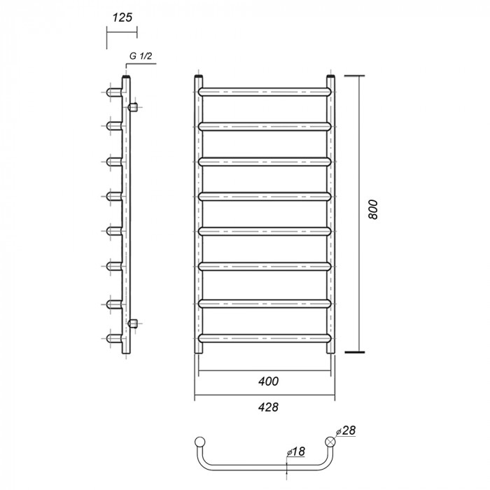 Полотенцесушитель водяной Domoterm Стефано Стефано П8 400x800 АБР Античная бронза равноудаленная нижнее 1/2" ВР (внутренняя резьба) стойка крепления - 4 шт., переходник угловой 1/2х3/4 - 2 шт., кран Маевского 1 шт., заглушка -1 шт. полотенцесушители настенные Россия 5 лет