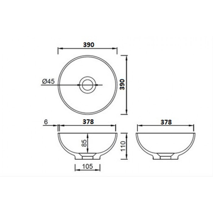 Раковина-чаша кориан круглая матовая, Slim 39см 390*390*145 879-39